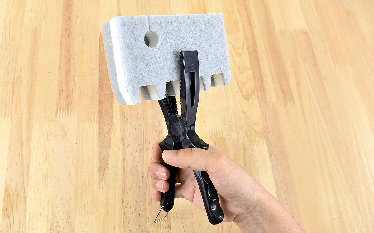 試しに今回はスポンジを掴んでみましたが、想像以上に安定した掴み心地です。多少スポンジを引っ張ってみても、つかみから落ちることはありませんでした。