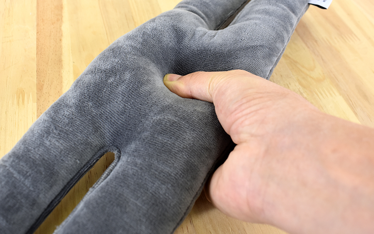 商品はどの部分もクッション性があり、とくに中央部分はかなりの厚み。生地表面もふわふわな触り心地のきめ細やかな繊維なので、扉や壁を傷つける心配がまったくありません。