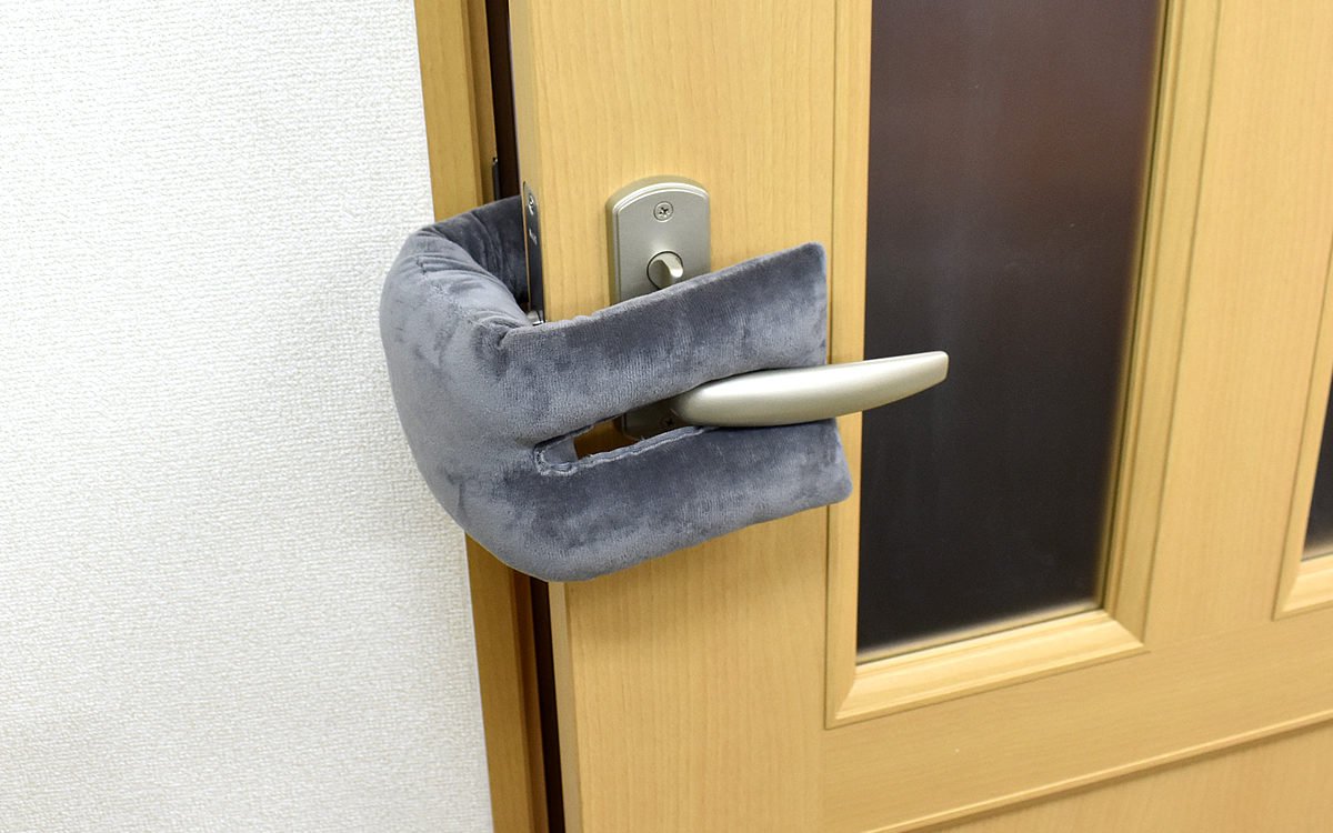 サイズは約11(縦)×42cm(横)と横長で、左右にドアノブを差し込むための穴が開いています。使い方はとっても簡単。扉のドアノブに、商品の左右の穴を引っかけるだけです。