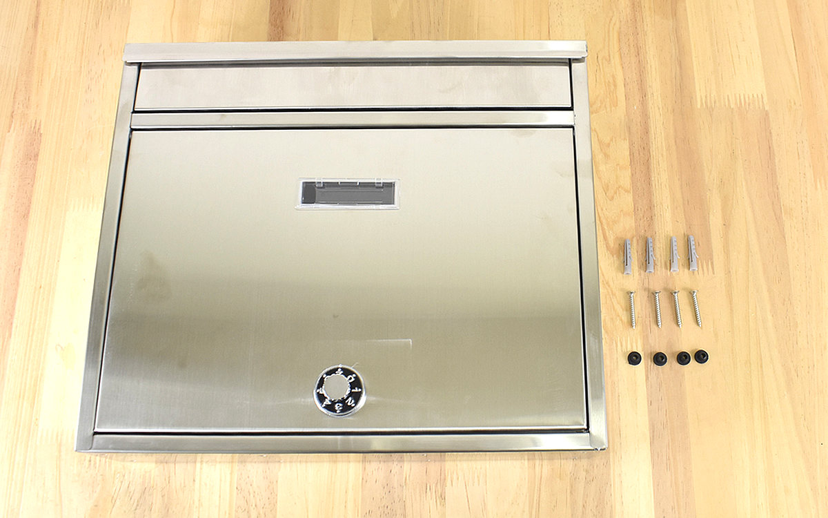 同商品の大きさは360(幅)×90(奥行)×310mm(高さ)と堂々たるサイズ感。前入れ・前出しの投函タイプで、背面と底面には固定用のネジ穴が開いていました。もちろんビスと補強用のアンカーが付属されているため、新しく購入する必要はナシ。プラスドライバーさえ準備しておけば、商品が届いてすぐに設置することができます。