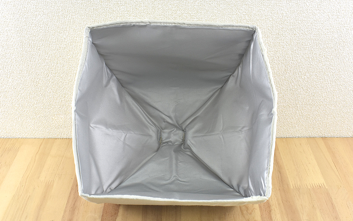 本体片隅のロゴ以外に装飾はないため見た目はシンプルでオシャレですよね。使用時は折りたたんだ部分をパッと広げるだけなので手間もかかりません。使用時のサイズは約25(幅)×25(奥行)×21cm(高さ・上部のループ含まず)。土鍋サイズは6号(直径18cmくらい)まで対応できます。