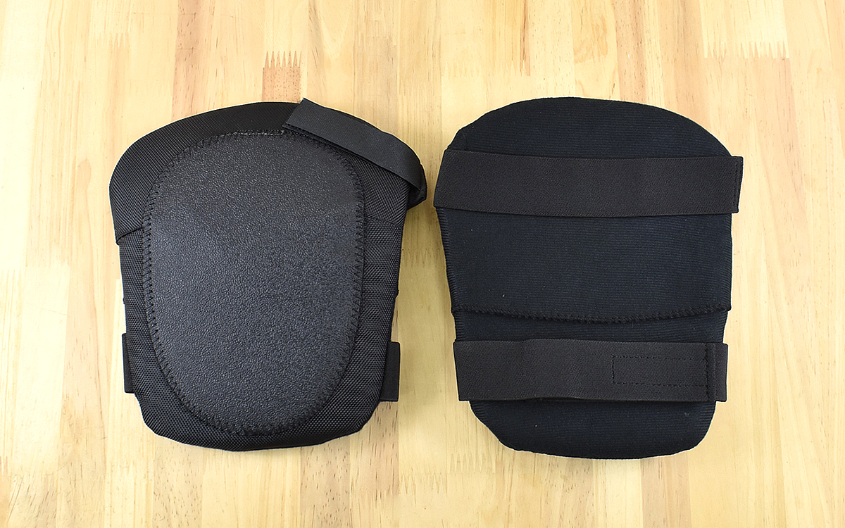 がっしりしているため着用感がごわつきそうですが、確認してみると裏面には手触りのいい生地が使われています。クッションの素材も柔らかいので見た目ほどごわつきませんでした。ひざを曲げてもクッションが邪魔にならず、プラスチック製のパッドに比べるとむしろ気にならないほどの自然な装着感です。