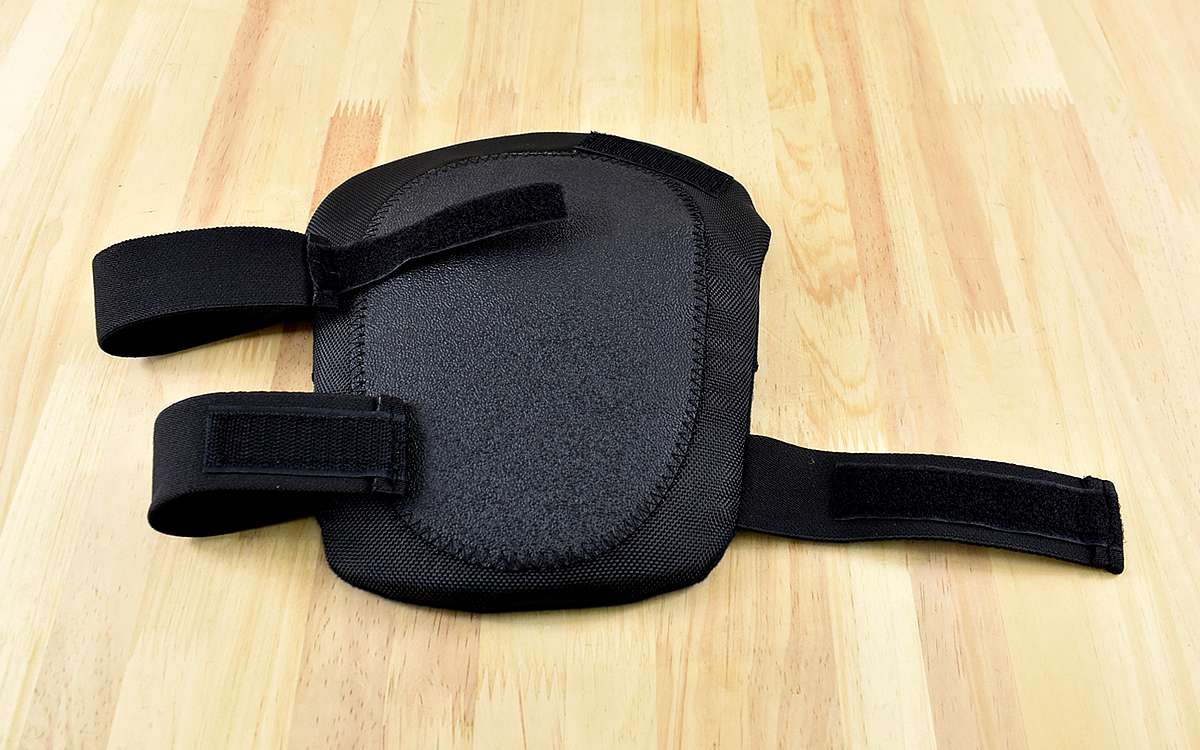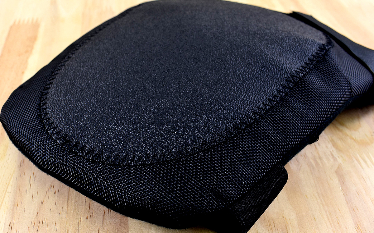 中に入っているクッションが厚めの発泡材なので、一見するとひざパッドというよりはミットのようながっしりした印象。サイズはおおよそ190(幅)×240mm(高さ)あり、ひざパッドにしてはかなりの大きさです。