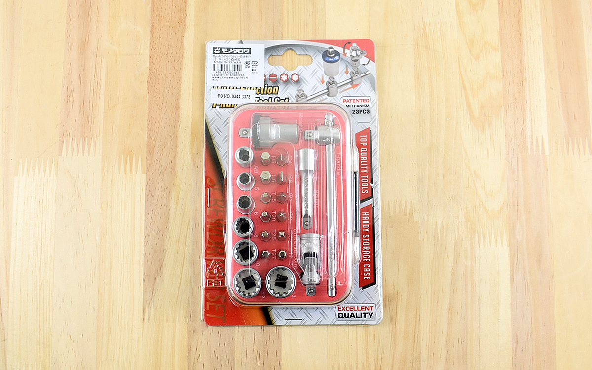 DIYに不慣れでも、たとえばプラスドライバーは「回すだけ」なのでコツさえ掴めば誰でも扱うことができますよね。とはいえ場所によっては窮屈な思いをしながら回したり、ネジに真っ直ぐ差すスペースすらないことも…。そこで今回注目したのが、「Tハンドル付ラチェットビット セット 23pcs」(2629円/税込)という商品です。