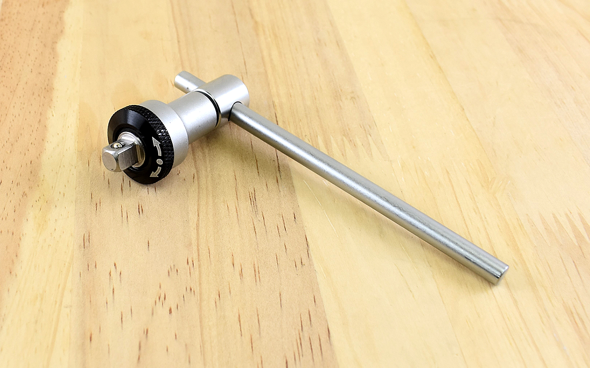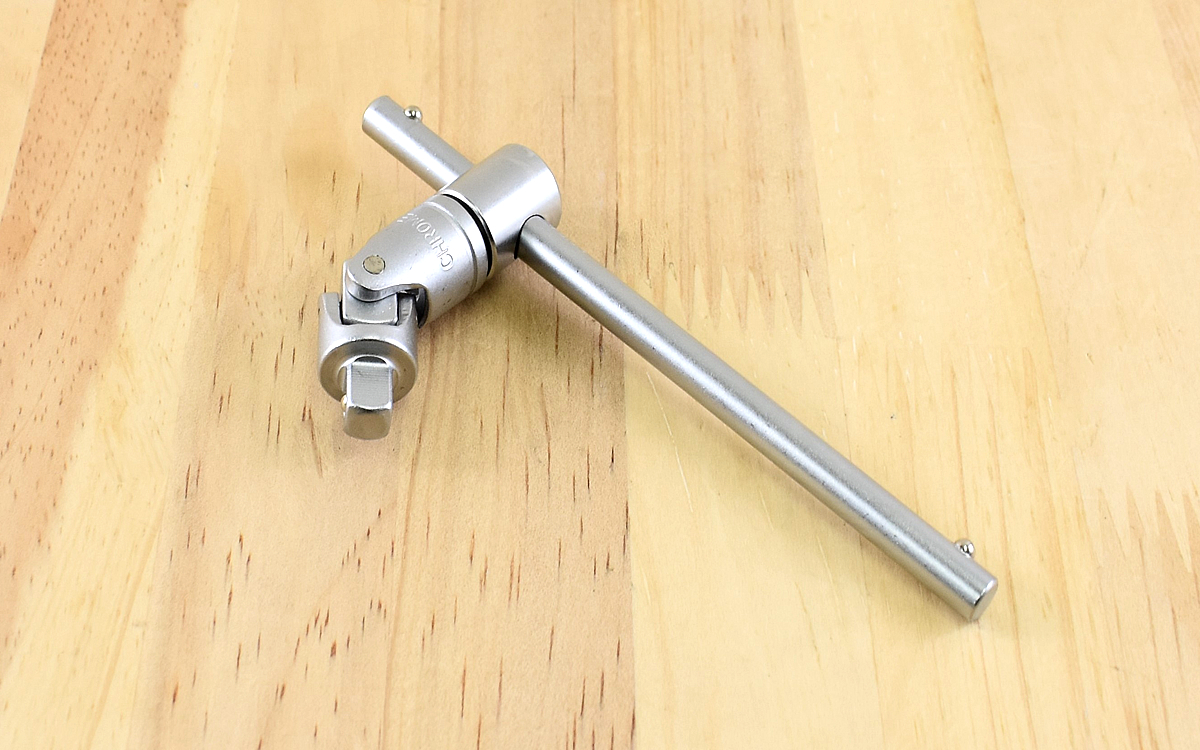 黒色のパーツがついたラチェットは、コンパクトながらも正転・固定・逆転の切り替えが可能。角度を変えられるユニバーサルジョイントや全部で6サイズあるソケットビットも、ハンドルに「パチッ」としっかり取りつけることができました。