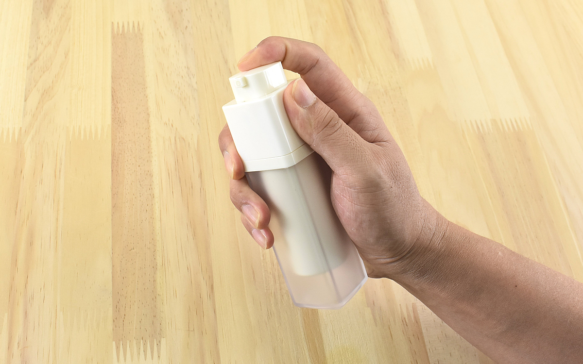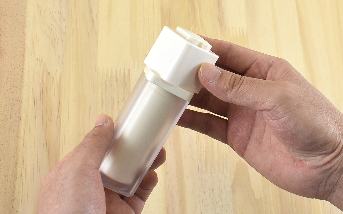 同商品の一番の特徴は蓋がないこと。「蓋がないってどういうこと?」と思うかもしれませんが、なんと上部を捻るとノズルが出てくる仕組みです。これなら蓋が見つからなくなって焦る心配もありません。捻るとノズルが出てくるのもちょっとカッコいいですよね。