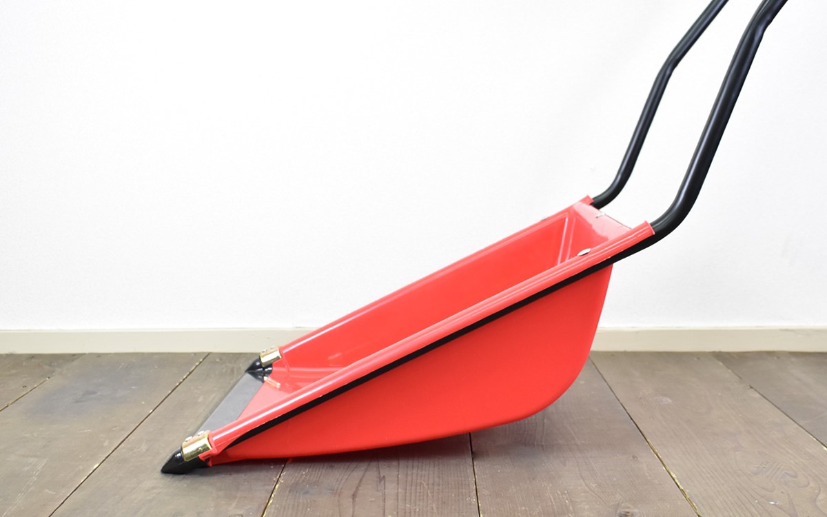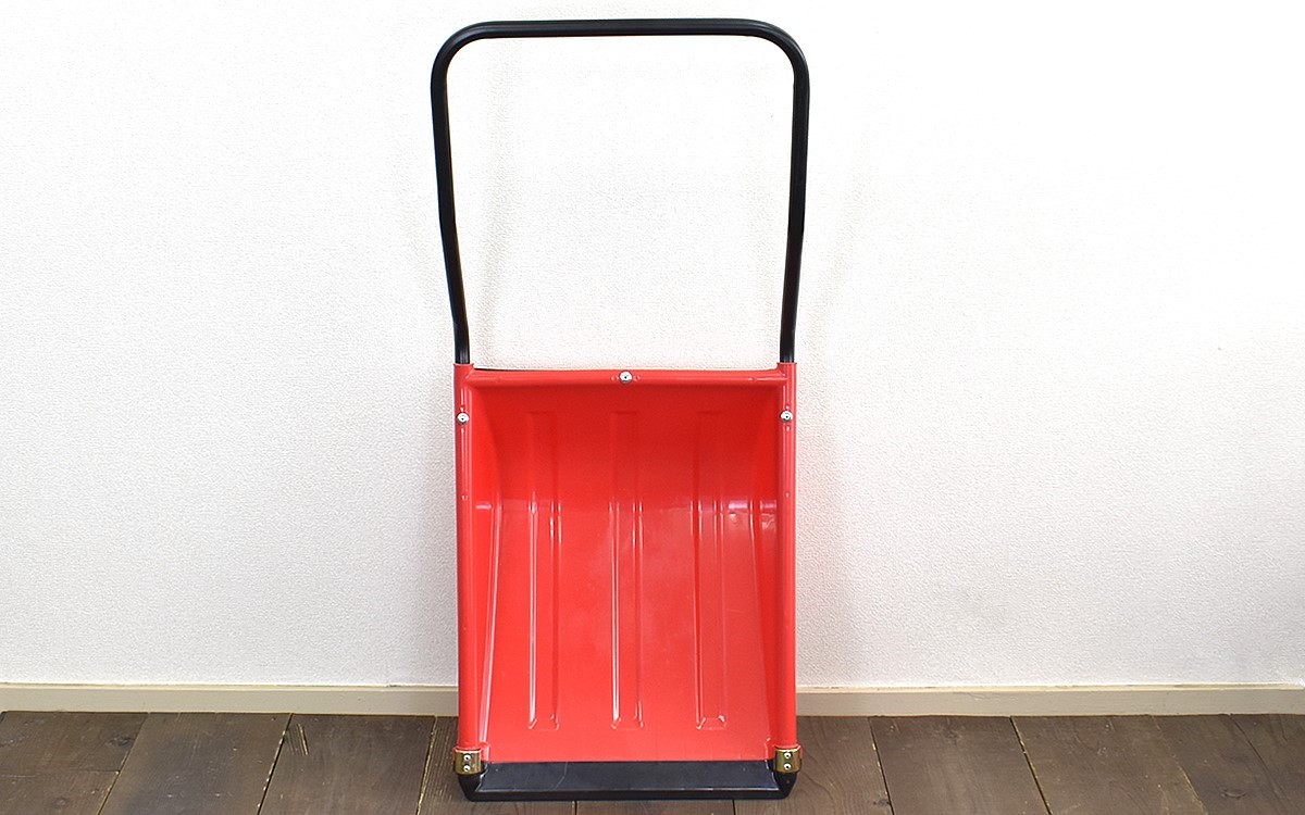 皿部分はポリプロピレン製ですが、厚めに作られているためかなり頑丈な印象を受けました。取っ手の部分もスチールパイプでできているので、雪の重みで折れ曲がる心配もありません。ただし外気に触れるとかなり冷たくなりそうなので、作業時の手袋などは必須です。