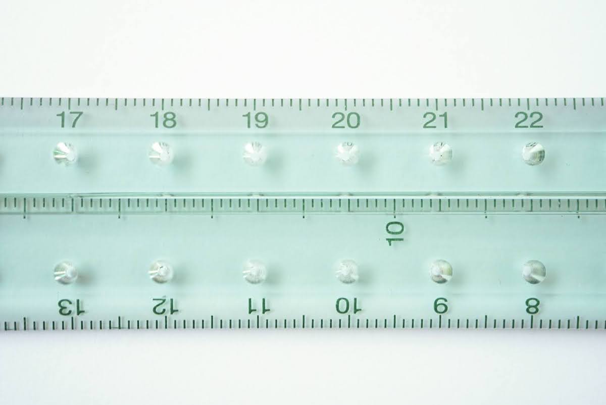 さらに定規をよく見てみると、10mmごとに穴が開いています。ノートや手帳などを等間隔に分割したい時に目印をつけられるのです。