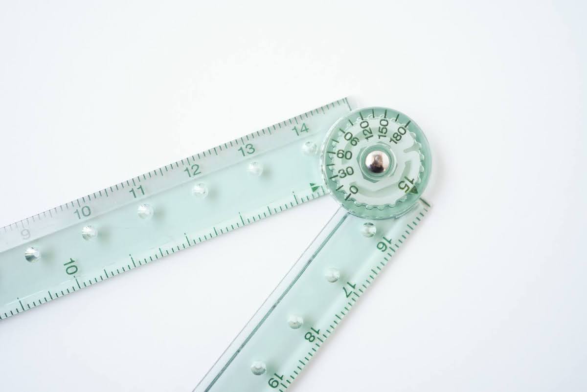 長さだけかと思いきや、実は角度も測れます。折りたたんだ定規は結合部で15度ずつ角度を測れるようになっているのです。