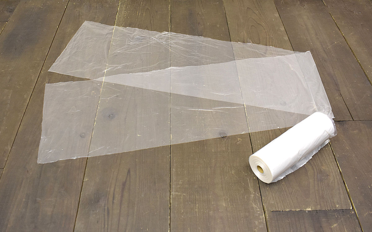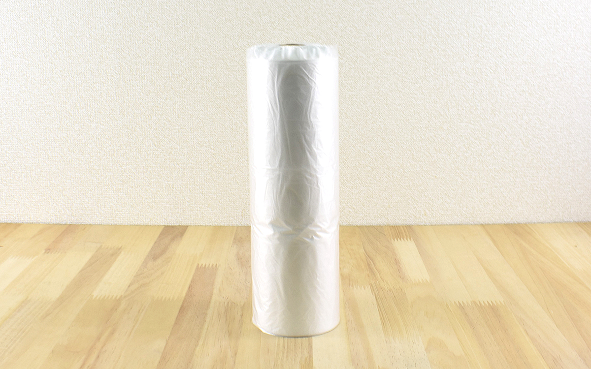 ロールを手にして最初に驚いたのは、持ち運びの際にあまりかさばらないスリムなサイズ感。シートの長さ(約50m)に対して、未使用の状態で78(直径)×250mm(高さ)しかありません。ちなみにシートの材質はポリエチレン(新料 100%)。ロールから伸ばしたシートが折り重なったままでも、ハサミやカッターでまとめて簡単にカットすることができました。