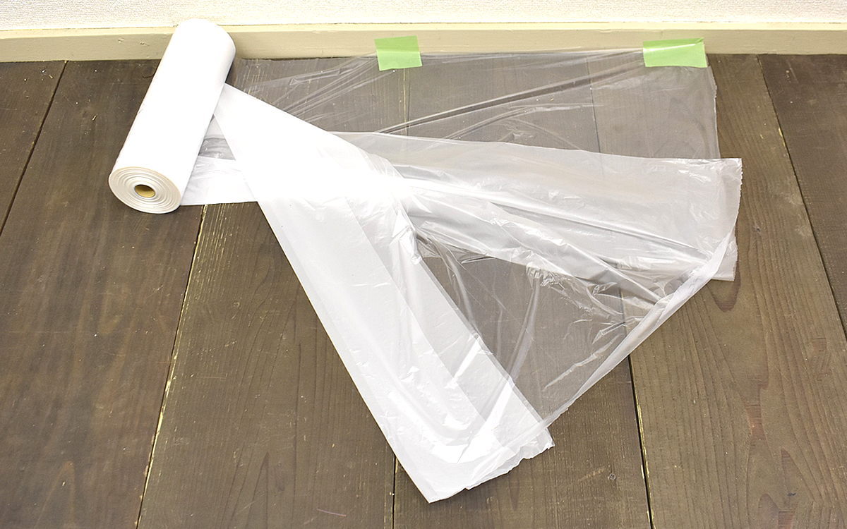 床に広げたシートはさすが1800mmも幅があるため、汚れをカバーできるスペースはかなりの範囲に。シート表面に付着した塗料が乾燥してはがれ落ちないよう、コロナ放電表面処理が施されているのも大きな特徴です。