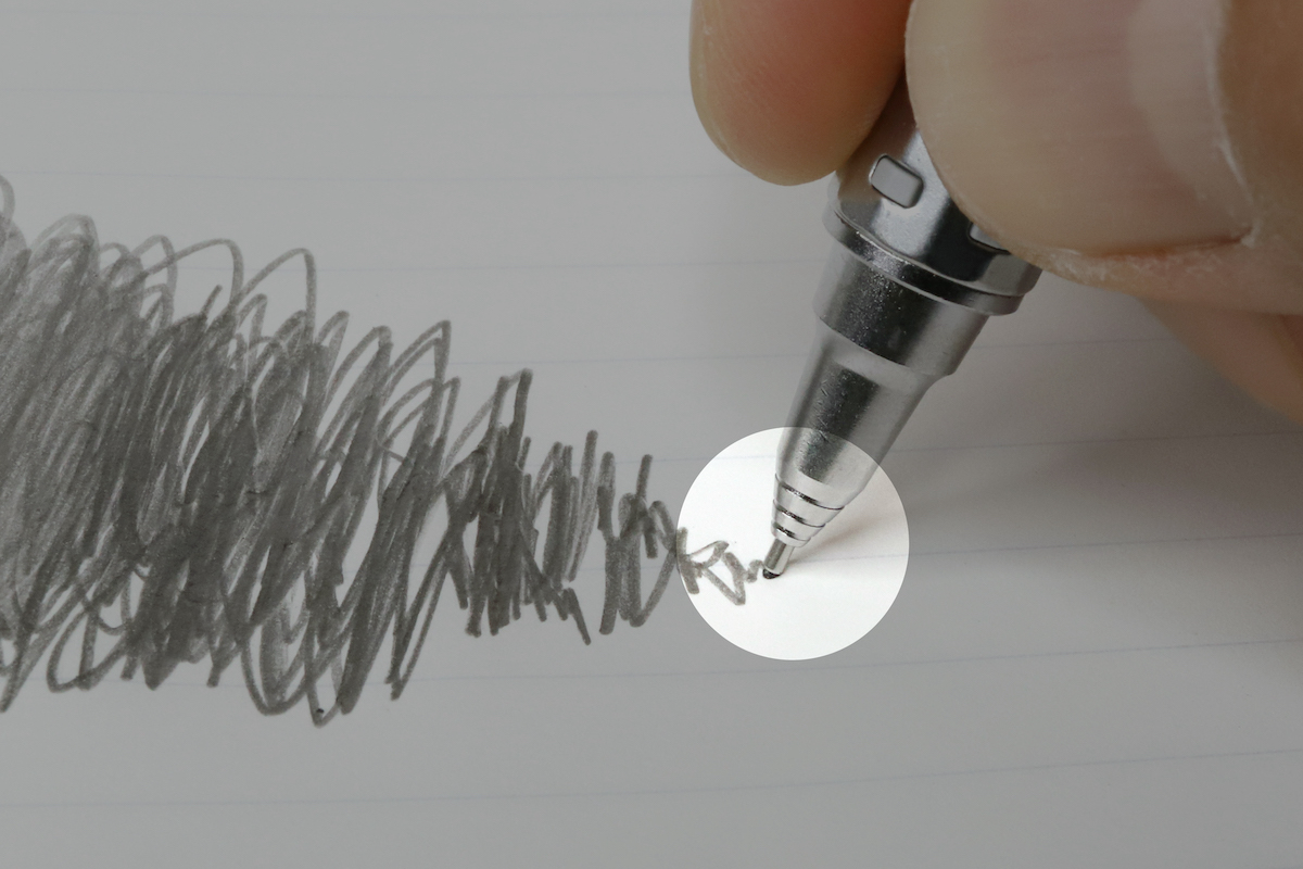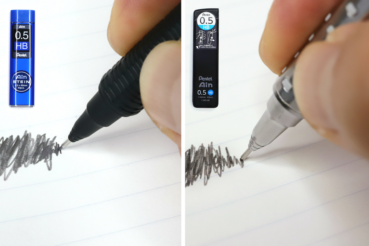 新しい「Pentel Ain」は、新製法によってそのすべてを高い次元でバランス良く達成しているのがポイント。特になめらかさが大きく向上しており、芯のエッジが筆記によって崩れてきたあたりからのスルスル感がとても気持ちいい。