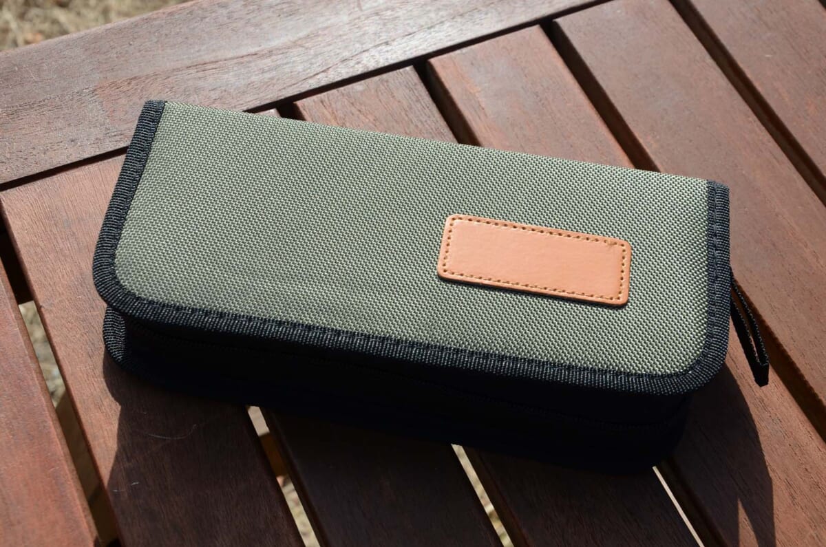 ポーチの表面と裏面には芯材が入っており、しっかりした作り。調味料を入れれば自立するほどの安定性がある。カラバリにブラックを用意。
