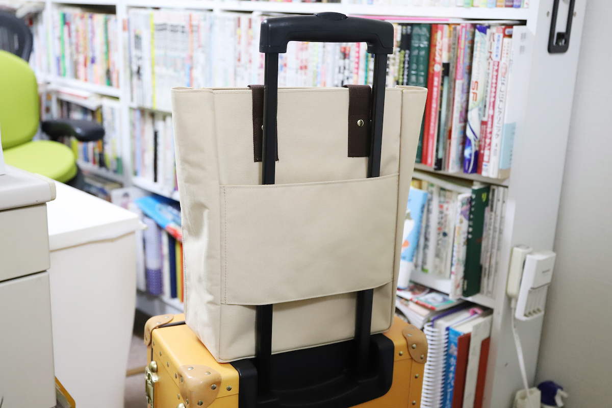 また、背面にはループも付いており、キャリーバッグのハンドルにセットできるのもありがたい。出張取材のときなどは、この有無で地味に機動力が変わってくるのだ。