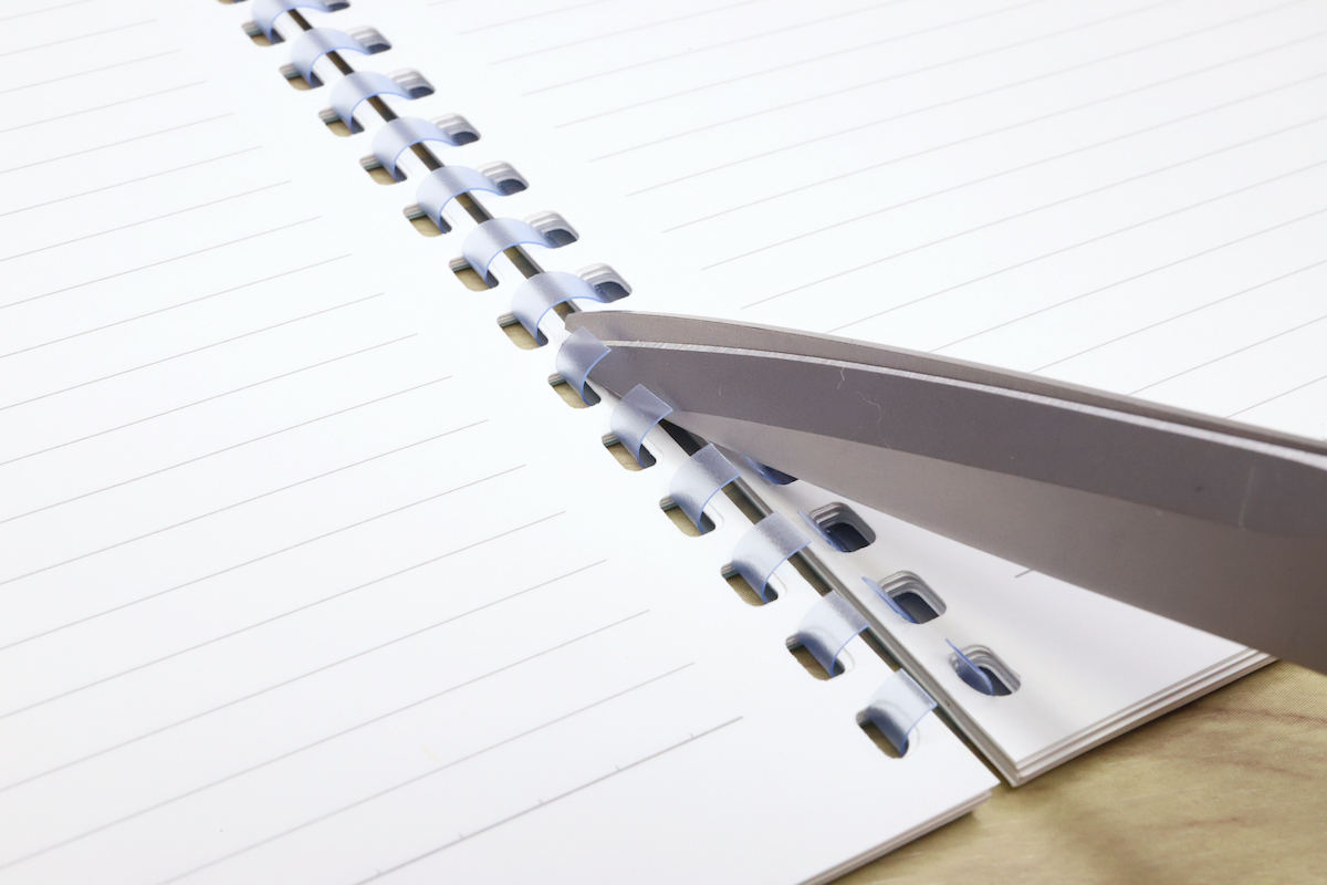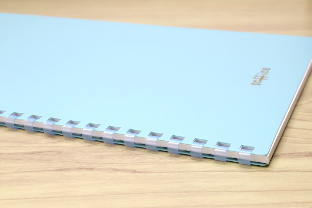 ハサミでリングを切って分解することができるため、バラした用紙は同じくリヒトラブのツイストリングなどに綴じなおすのが簡単、というのもメリットとして挙げられる。持ち歩きノートは軽快な「ソフィーチェノート」で、情報は「ツイストノート」にまとめなおす、という使い方はなかなか便利だと思う。ちなみにノート自体を廃棄するときは、(自治体にもよるが)だいたいはそのまま燃やせるゴミとして出してOKだ。