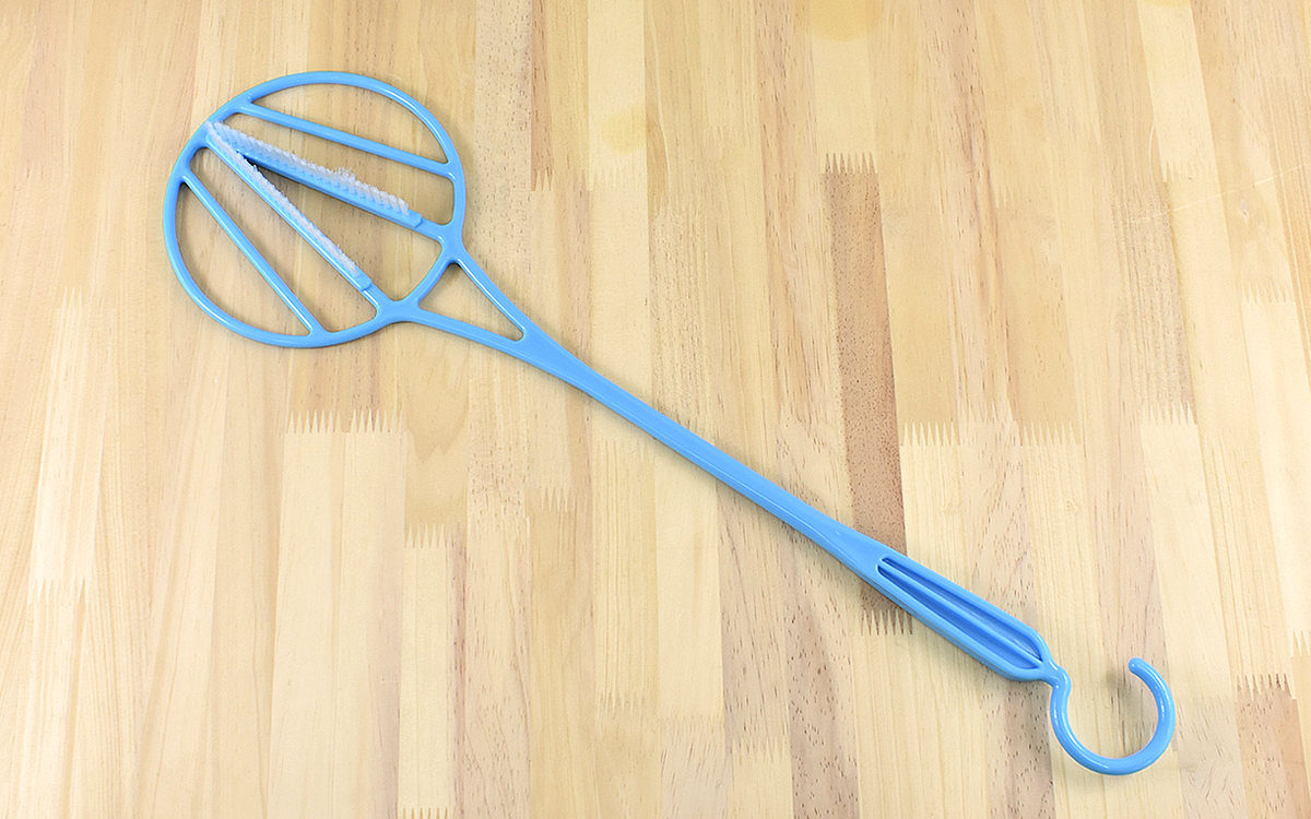 今まではふとんたたきとは別にゴミを取るためのアイテムが必要でしたが、ブラシが付いていればクルっと向きを変えるだけで道具を持ち替えることなく払い落とせて便利。また今回紹介したのはブルーカラーですが、ホワイトタイプも展開されています。