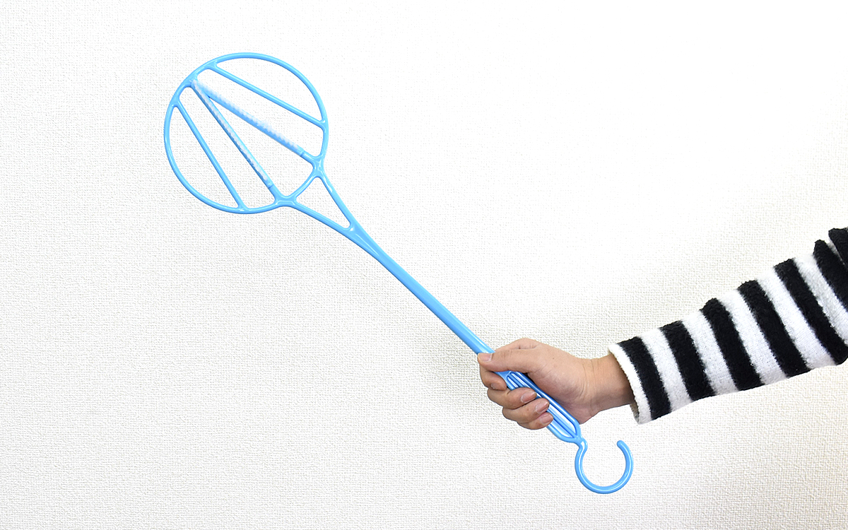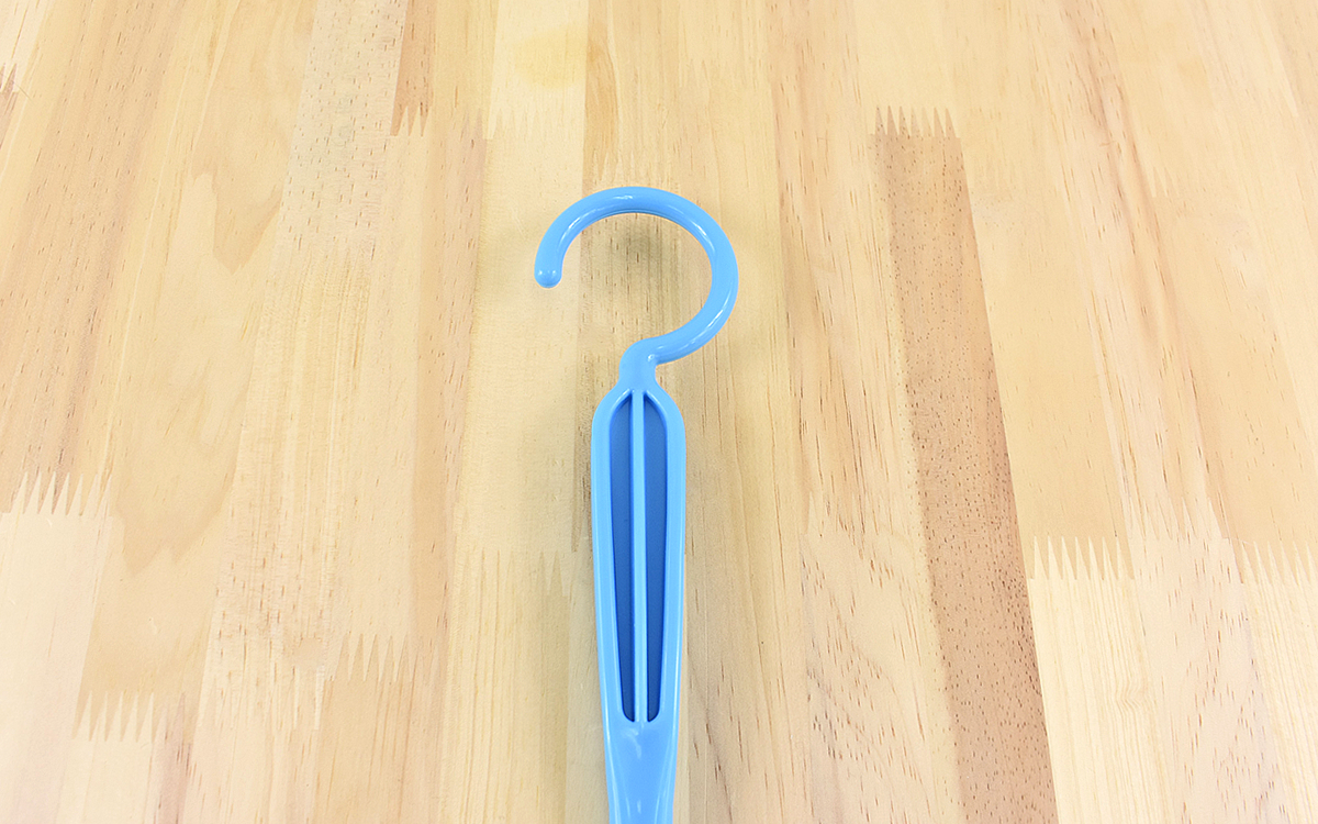 持ち手部分はフック状になっているので、使用しない時は物干し竿やハンガーなどにパっと引っかけておけます。置き場所に困らず、手に取りやすいのはありがたいですね。