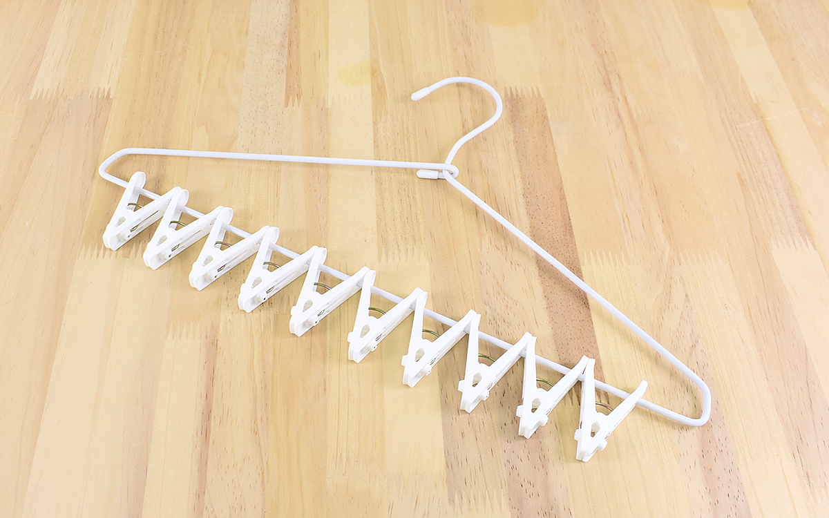 ピンチは10個付きで、つまみ部分をハンガーが貫いている形状です(ピンチの取り外しはできません)。カラーはホワイトとグレーの2色展開で今回はホワイトを選択しました。