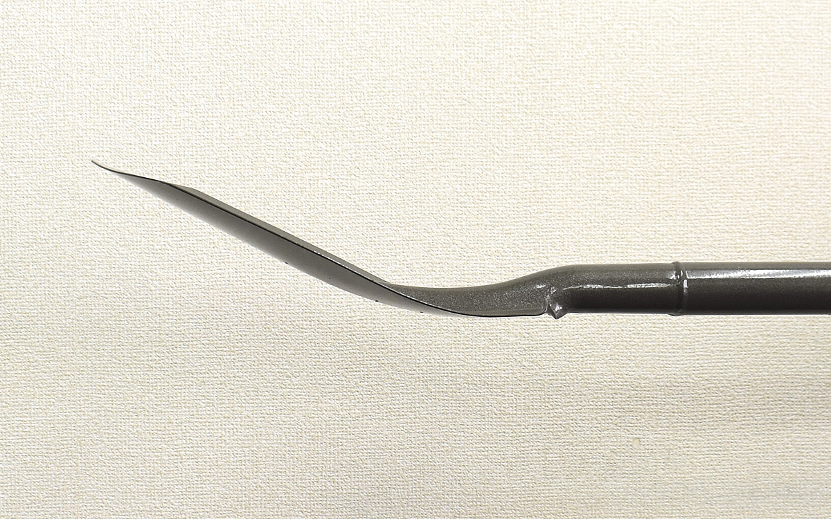 「溝堀ショベル」の全長は97cmと、一般的なショベルと同程度の長さ。一見すると通常のショベルと同じように見えますが、注目すべきは幅がスッキリと細い頭部です。