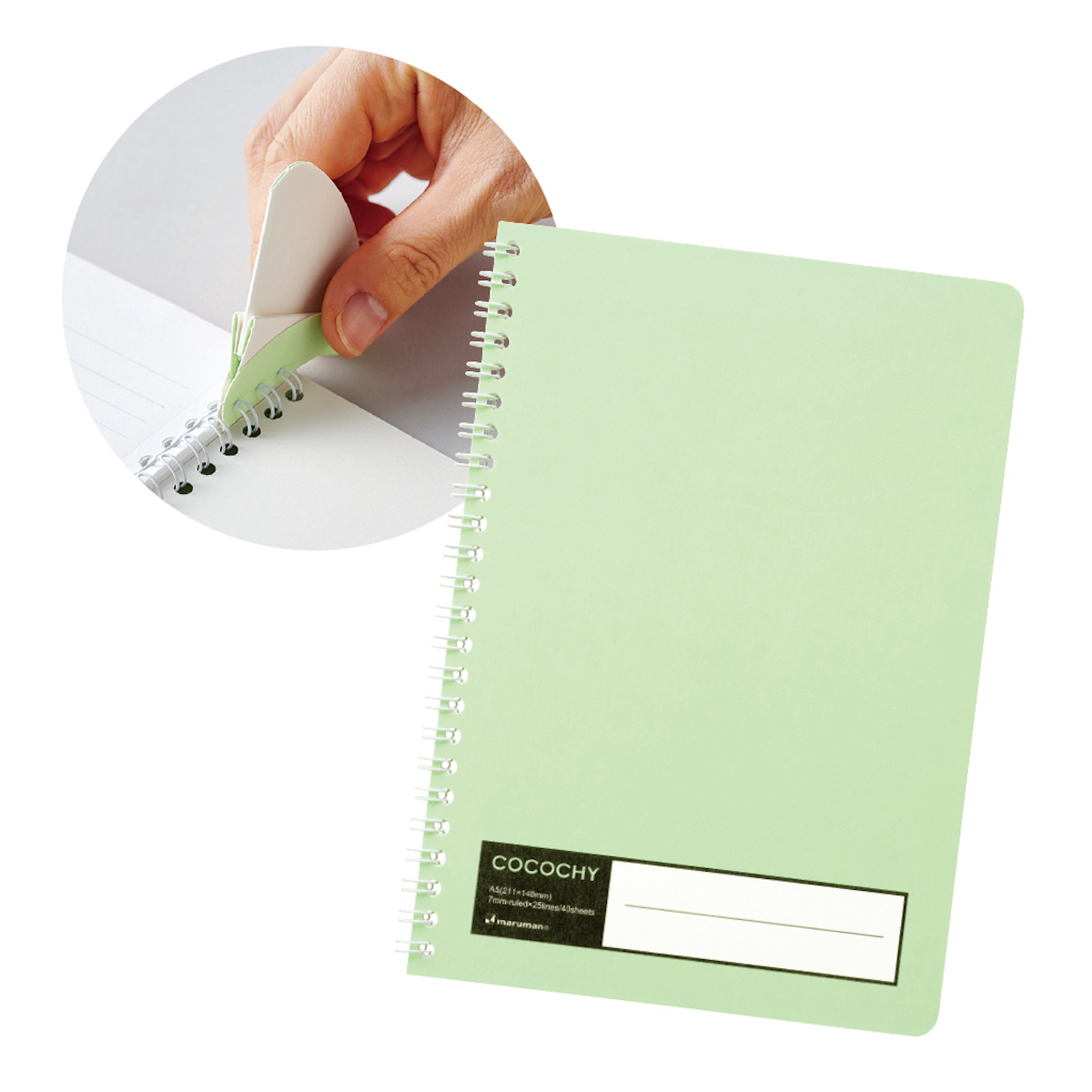 裏表紙から組み立てられるリング分解ツールを用い、廃棄時にリングとノート本体を簡単に分離できる。中紙の原料にはサステナブルなFSC認証材を使用。裏抜けしにくくなめらかな書き心地も美点だ。