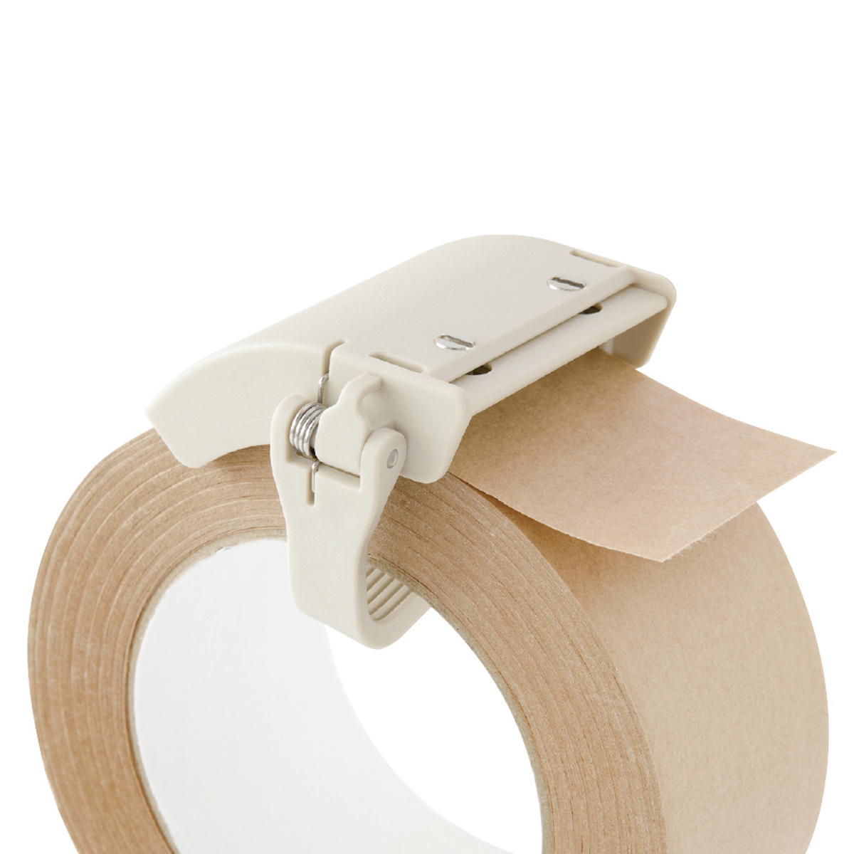 クラフトテープ用のギザギザカッターが進化した。クラフトテープを軽い力でまっすぐきれいに切れる専用カッター。切るときに安全カバーが自然と上方向に持ち上がり、刃先が指に当たりにくい安全設計だ。