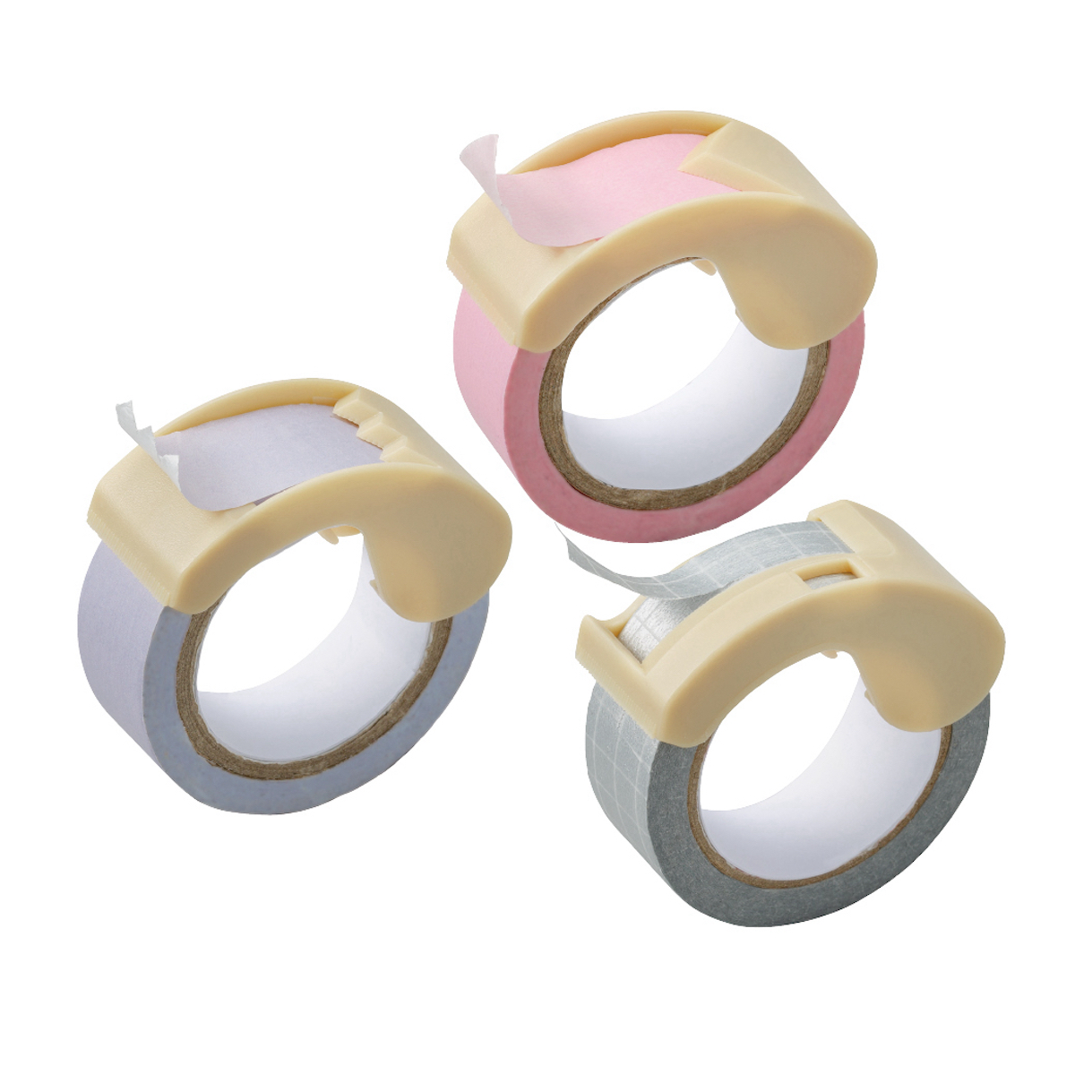 マスキングテープの飾り切りができるテープカッター。「リボン」「ギザギザ」「細くする」の3種セットで、いずれもまっすぐにも切れる2way仕様。ラッピングやデコレーションなど幅広く使える。