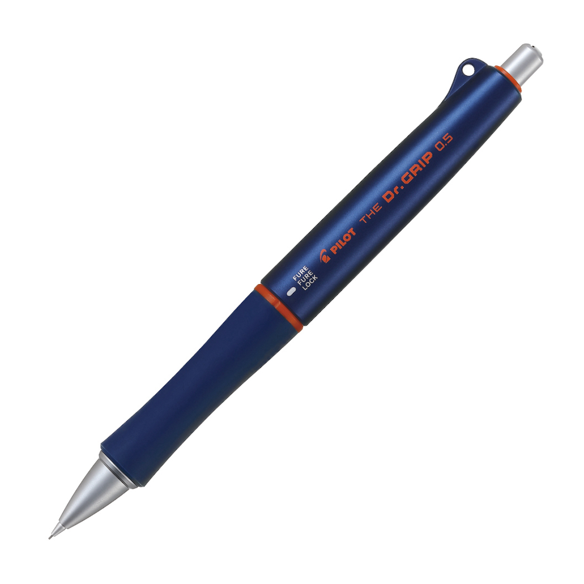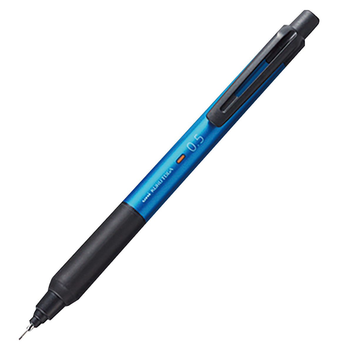 ノック1回で書き続けられる自動芯出し機構、ペン先のパイプで芯を守る「オレンズシステム」を搭載。握りやすいラバーに金属製デュアルグリップの安定感が加わって疲れにくい。芯径0.5mm。全4色。