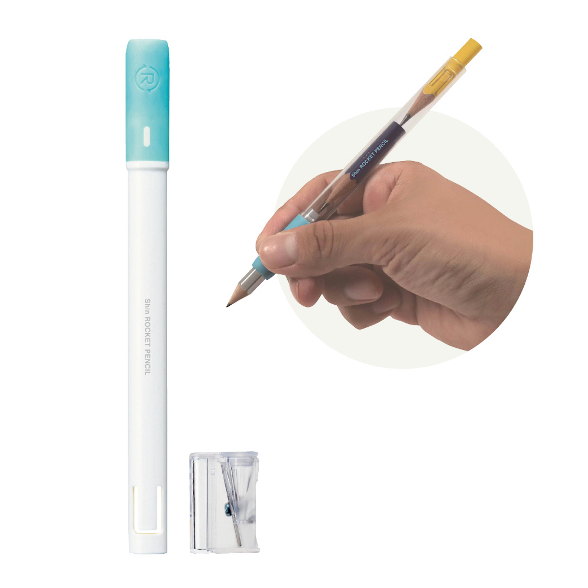 短くなって使えない鉛筆を3本ほど連ねてムダなく使える、押し出し式の鉛筆ホルダー。短い鉛筆に使える鉛筆削りも付属する。正しい持ち方もきちんと身に付けられ、最後まで使い切る心を養うという。全3色。
