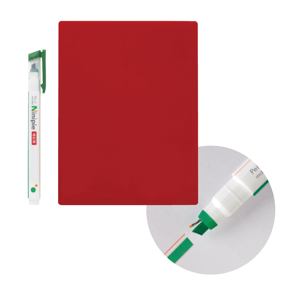 細字のペンとマーカーをひとつのペン先に集約、指先で半回転して切り替えられる「ニニピー」の暗記用ペン。オレンジのペンと緑のマーカーを付属の赤シートで隠しながら、効率良く勉強できる。
