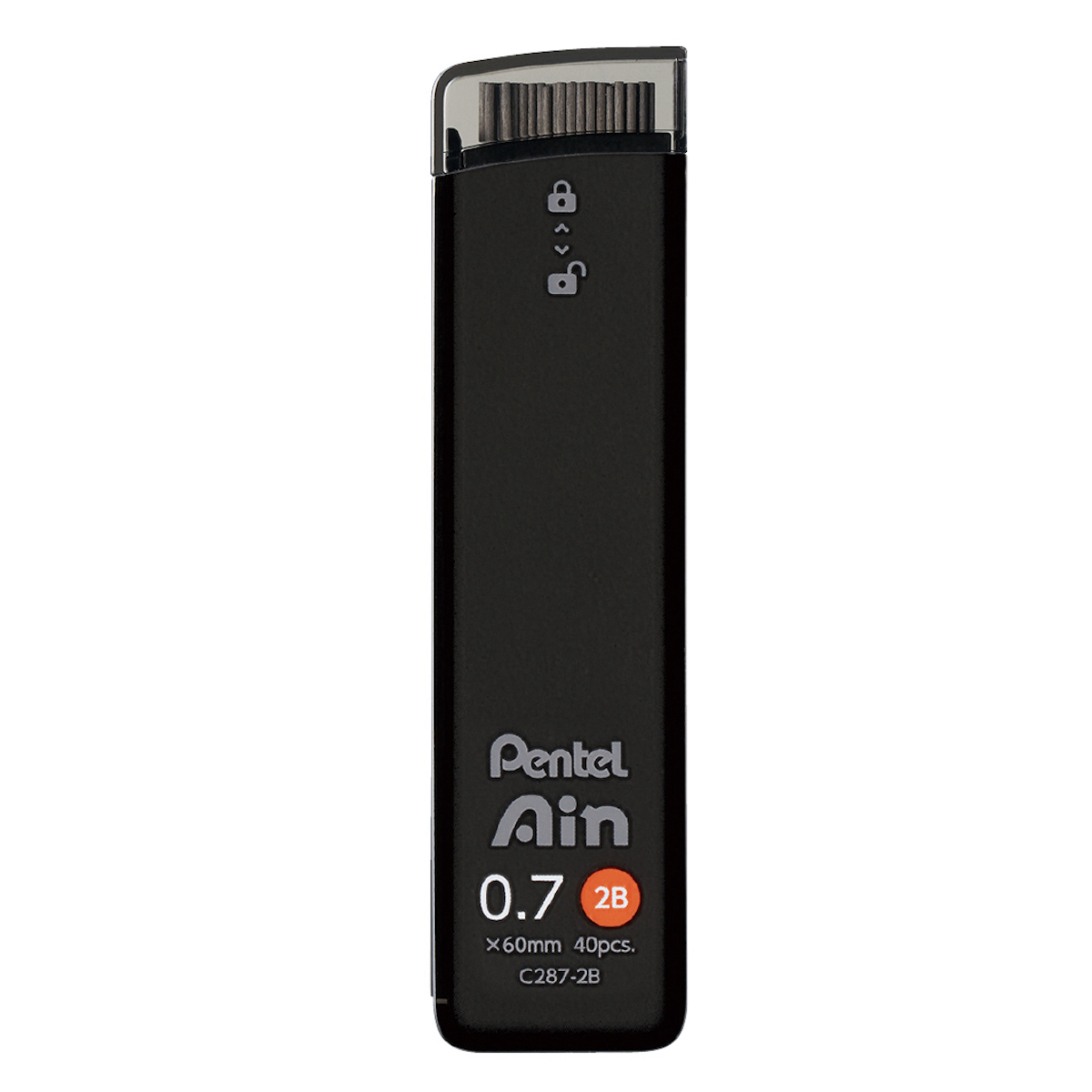 原材料に特殊なオイルを使用、なめらかさと折れにくさ、汚れにくさを備えたシャープペン替芯。上向きのまま片手でスマートに取り出せるケースは、見た目のカッコ良さからも満足感を得られる。