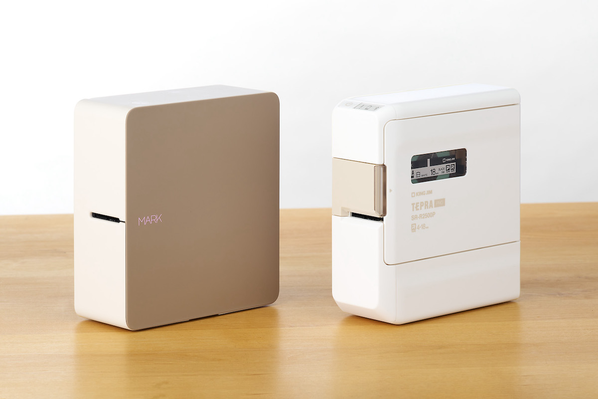 “MARK” は同時にリリースされた専用アプリ「Hello」のテンプレートの充実ぶりと、そのテンプレートのデザインを繊細に表現できる高精細ヘッド、プロダクトデザイナー・柴田文江氏が監修したインテリア性の高いデザインなど、実用一辺倒だったテプラのイメージをいい意味で裏切ったモデルである。