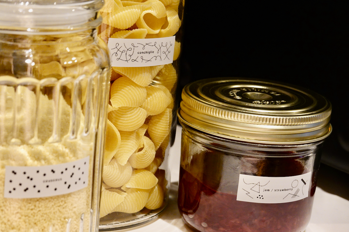 食品やツールなど、効率的な整理収納が欠かせないキッチン。とくに食品はフードロスを減らすためにも、ラベリングでどこに何があるのか、自然と目に入るようにしたいもの。「キッチン」カテゴリに用意されたテンプレートから選んで印刷。ラベルの色・幅・デザインの統一感があれば、キッチンにも統一感が生まれる。