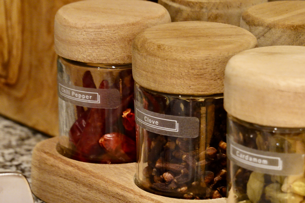 続いて、スパイスの小さな瓶。いくつもあると、一見するとどれがなんだかわからず、使う時は地味に面倒だ。それぞれラベルで表示すればわかりやすい! といたってシンプルなハナシ。貼れる面積が小さめなので、枠線でデザインされたすっきりしたデザインのテンプレートで統一。「一括作成」を使えば、同じテンプレートで異なる文言を一気に編集・印刷が可能で、時短になる。
