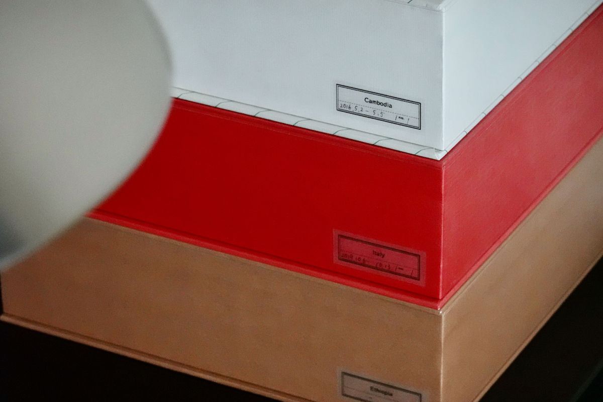 例えば過去の旅行で溜まったポストカードやチケット、パンフレット、現地の通貨などをまとめてイン。旅先はあらかじめプリントしたが、ここに日付を付記して、中身をわかりやすく、また記憶を辿りやすくできる。