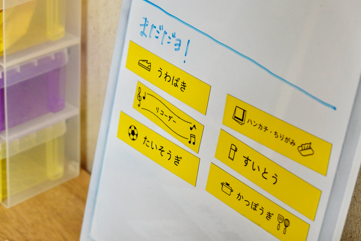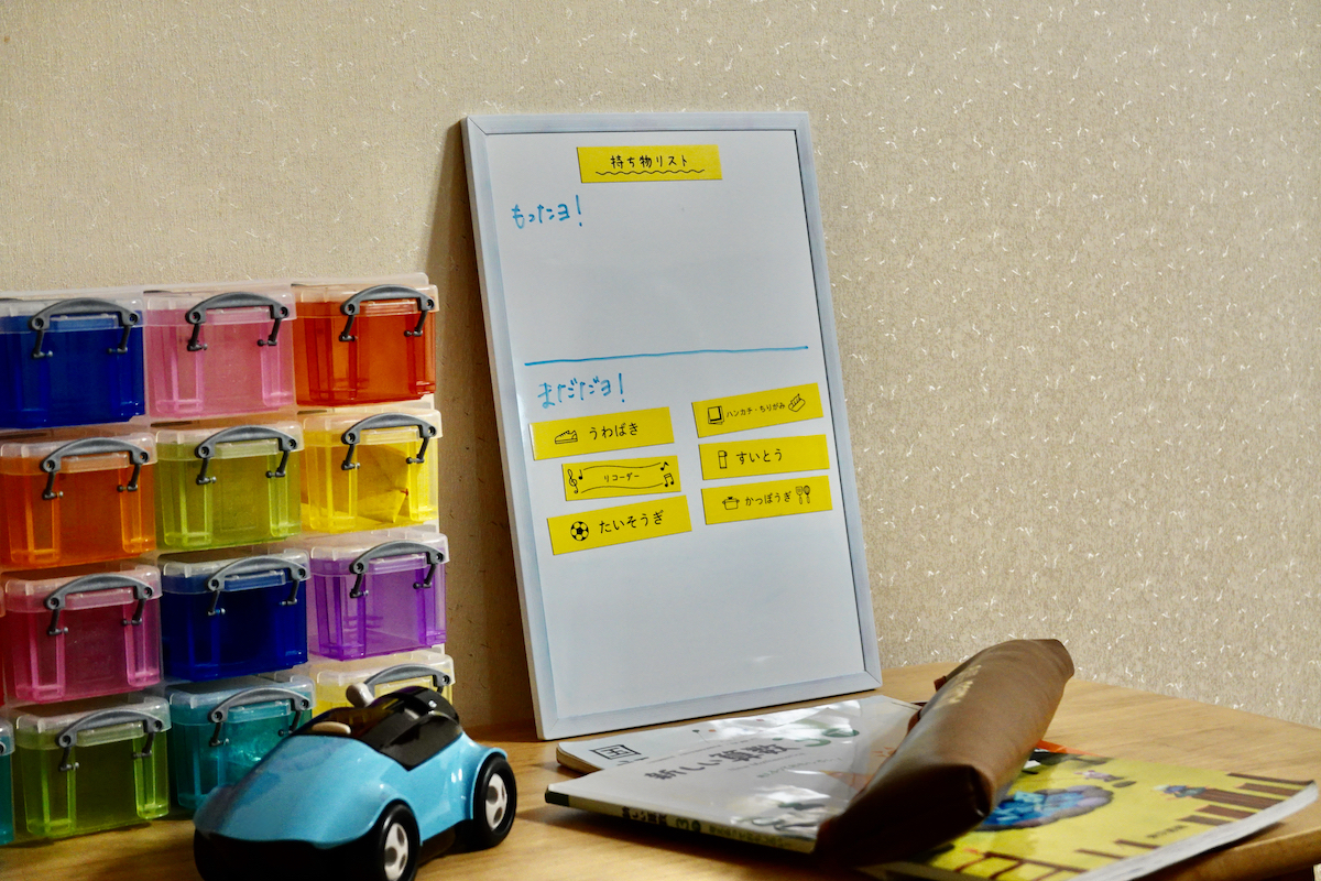 こうして「テプラ」を使って物の定位置を決めてあげることで、子ども自身で片付けをするきっかけを作れる。