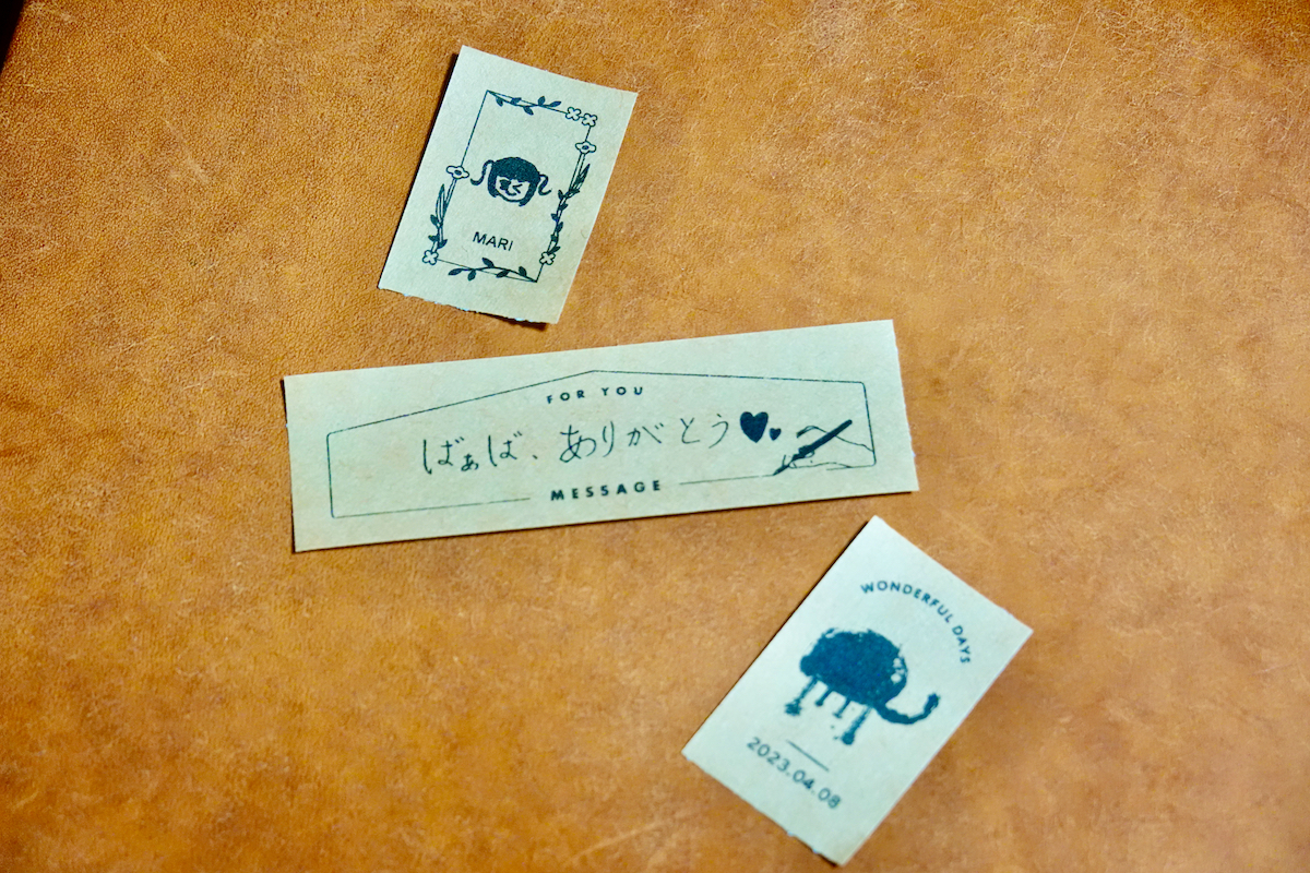 ラベルにカラーをのせる場合は、油性ペンか色鉛筆がおすすめだ。ラベルの上から塗るとほんのり、下に仕込めばくっきりと、発色の違いも楽しめる。