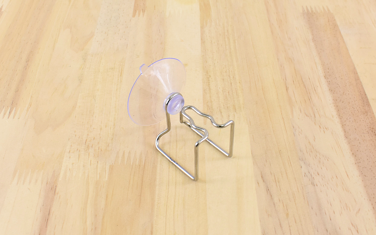 デザインはいたってシンプルで、吸盤にステンレスを取りつけただけ。ステンレスは上に向かってスライドすれば吸盤から簡単に外すことができるので、お手入れも便利。耐荷重量は約300gでアイテム自体は非常に軽いです。