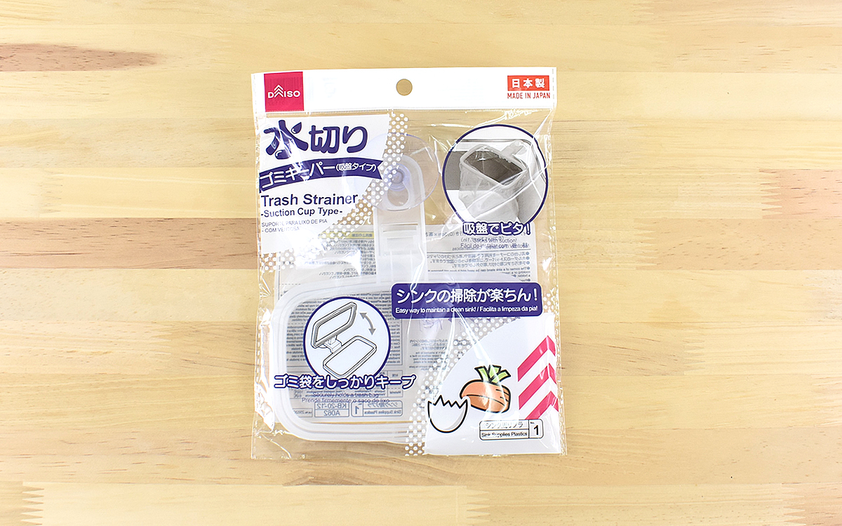 そんなダイソーで今回は生ゴミ対策にぴったりな「水切りゴミキーパー(吸盤タイプ)」を購入してきました。さっそくどんな商品か見ていきましょう。