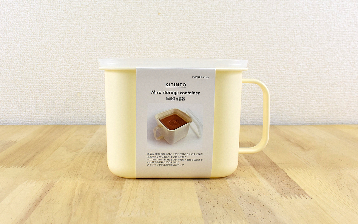 どこのご家庭にも常備されているお味噌。皆さんはどのように保存されていますか? 我が家では買ってきた容器のまま保存していたのですが、気付くと蓋が外れてしまっていることがあり「別の容器に入れた方がいいな」と思っておりました。でも、わざわざ移し替えるのも面倒だし。そんな時、スリコで見つけたのが「味噌保存容器」(330円/税込)です。