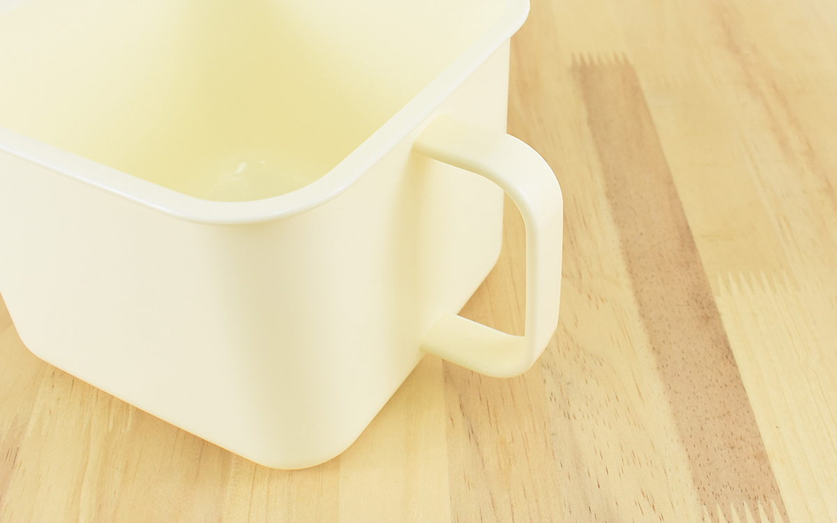 手に取ってみると大きな持ち手は安定感があり手に取りやすいと感じました。調理中に冷蔵庫からの出し入れが片手でスムーズにできるのでGOODです。