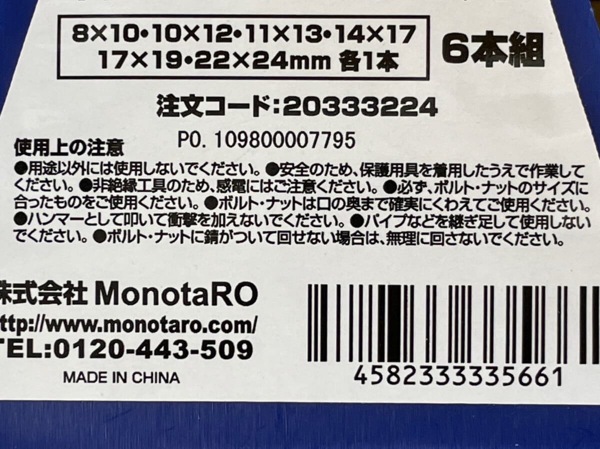 ●必須のDIY工具「メガネレンチ両口セット」はコスパ良し!(モノタロウ)