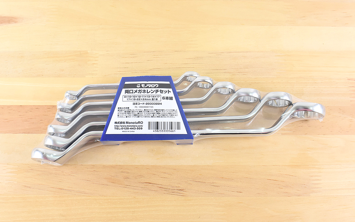 DIYや車のメンテなどで大活躍中のメガネレンチ。現在使っているものがサビてきたため新しいレンチを探していたのですが、モノタロウで「メガネレンチ両口セット」(1969円/税込)という商品を発見! コスパが良かったので試しに購入してみました。