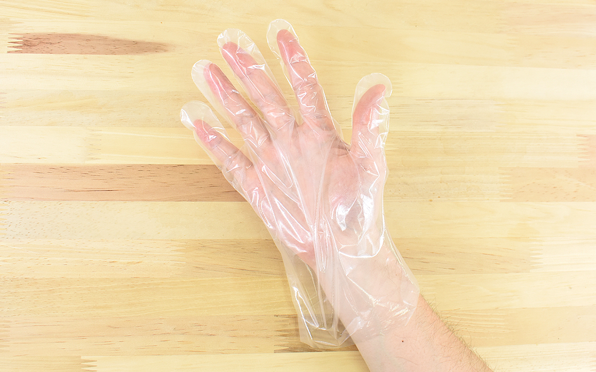 実際に装着してみたところ、手首付近はゆったりしていますが指の付け根辺りからきゅっとフィットする感触があります。作業中に脱げにくい作りなのもありがたいですね。厚みが0.023mmしかないため、ゴム手袋と違って指先を直感的に動かせました。ふわっと軽い着け心地なので不自由さはほとんど感じませんよ。