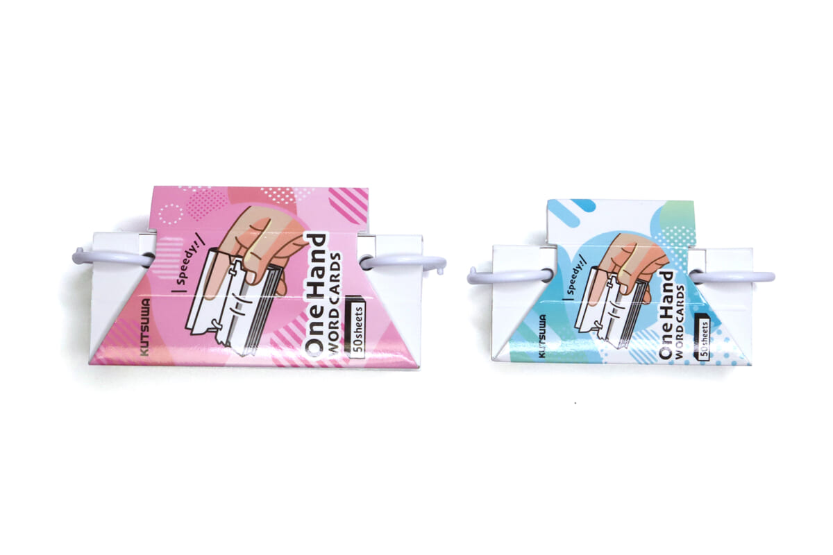 クツワの「ワンハンド単語カード」は、まさにその “サクサクめくり性能” を徹底的に高めた、新しいタイプの単語カードと言えるだろう。なによりユニークなのは、その名の通りワンハンド、片手でサクサクめくっていけるという特異な構造である。