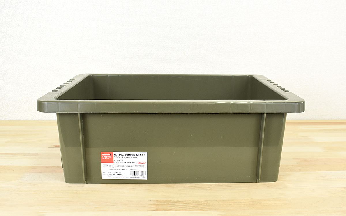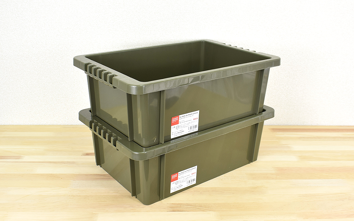 いつのまにか増えてしまうアウトドア用品や工具類を収納するために、丈夫でオシャレなコンテナボックスを探していました。そこで最終的に選んだのが、モノタロウの「NVボックス バンパーグレード」(692円/税込)です。