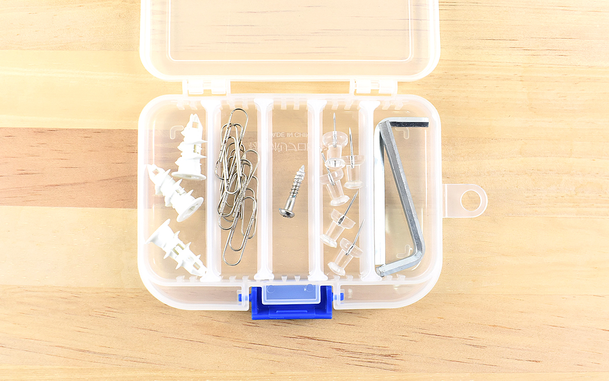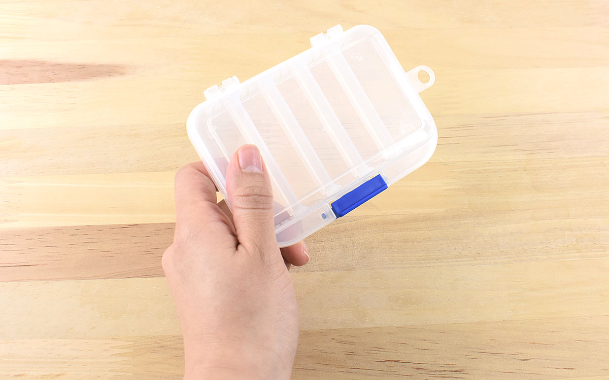 ケースはクリアタイプで収納物が見えやすく、仕切り板でパーツごとに分けられる仕様。これなら道具を失くすことがなく、取り出しもスムーズにできそうです。ケース・仕切り板ともに手のひらサイズの割にしっかりとした作りなので、すぐに壊れる心配もないでしょう。