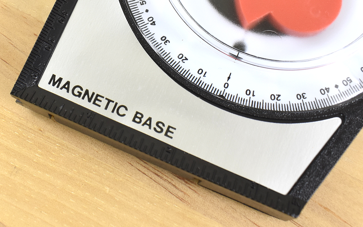 マグネットを使って計測する場合は、針が90度を向けば垂直が確認できました。マグネットはかなり強力なので、作業中にアングルファインダーが落ちてしまう心配もなさそうです。