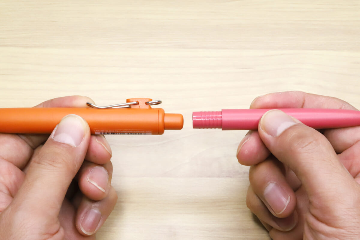 もちろん短寸化で携帯性はちょっと良くなっているかもだけど、代わりに軸径が太くなっているので、一般的なペンの太さを基準に作られているペンホルダーに入らない、などの不便も出そうな気はする。