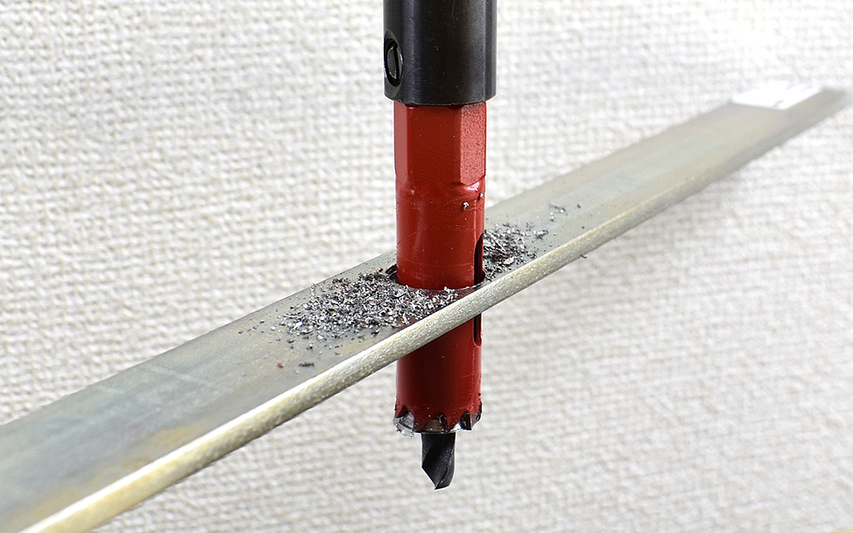 金属素材や厚みのある素材だと穴が空くまで多少時間がかかることも…。それでも最後にはしっかりと穴はあくので、それまできちんと地道に作業を進めることが大事です。