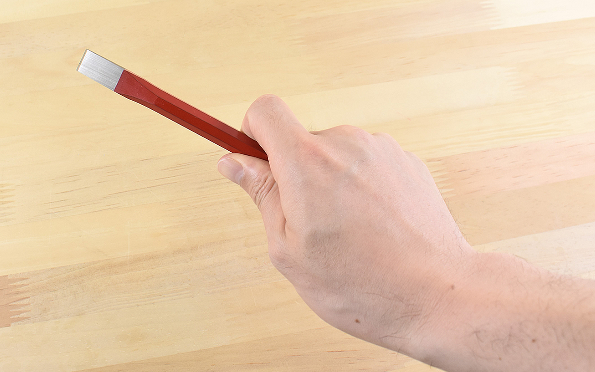 手にしてみた感触は、太い鉛筆を持っているような感覚でした。材質にはJIS規格で規定されたS45C(機械構造用炭素鋼鋼材)が用いられているため、見た目よりもしっかり重みがあります。グリップは八角形でペンを握るように持っても鷲掴みにしても、指にフィットしやすいのが嬉しいポイント。